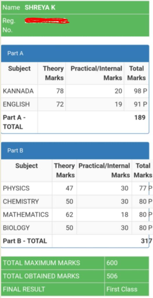 Our students, Trisha and Shreya, have passed their 2nd PUC Science stream exams with flying colors. Trisha ranked first in her college, achieving a distinction of 94.67%, while Shreya attained a first class of 84.33%. They are now diligently preparing for their Common Entrance Tests.