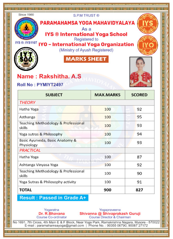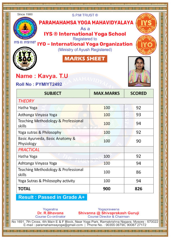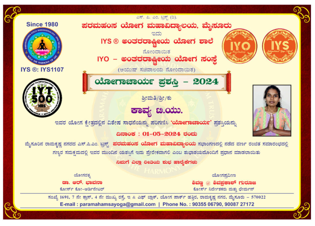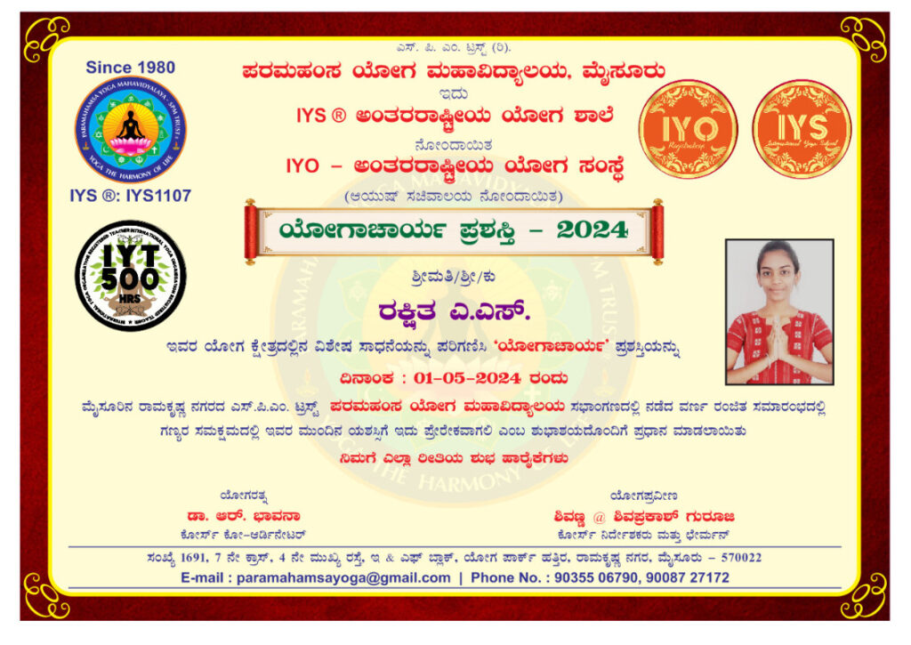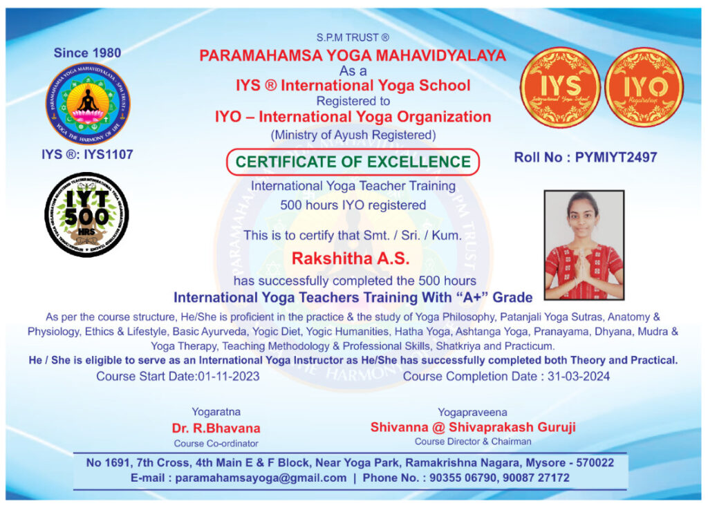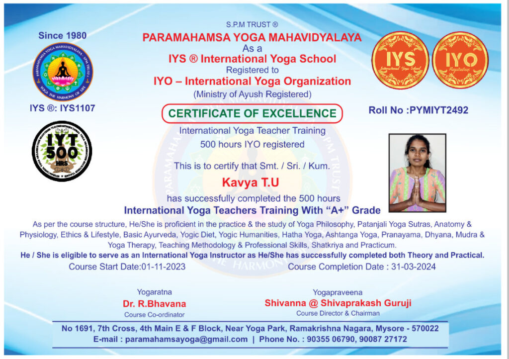 Yogacharya Triumph: Kavya and Rakshitha Earn A+ Grade in International Yoga Teachers Training Course!